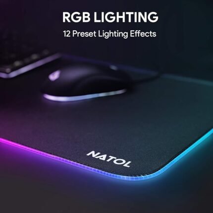 NATOL RGB Gaming Mouse Pad, Large XL Mouse Pad with 12 Lighting Effects, Non-Slip Rubber Base, Smooth Surface, for Keyboards and Mice, PC and Laptops, 800 x 300 mm