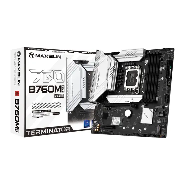 The Maxsun Terminator B760M D4 WiFi6E DDR4 is a compact yet powerful micro-ATX motherboard designed for Intel’s LGA1700 platform, supporting 12th, 13th, and 14th Gen Intel Core processors. Built with the Intel B760 chipset, it delivers stable performance for gaming, productivity, and everyday computing while maintaining efficient power delivery and modern connectivity. Integrated Wi-Fi 6E ensures fast wireless networking, making it suitable for users who want reliable performance without additional expansion cards.